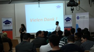 Einen ersten Eindruck von gesellschaftlichen Projekten durch Muslime durften wir bei der Präsentation von Study Coach 2.0 erfahren, welche dieses Jahr die Auszeichnung zum Impulsprojekt gewonnen hatten. Study Coach 2.0 führt aktiv anhand eines ausgeklügelten Beratersystems Abiturienten/-innen und angehenden Studenten/-innen in und durch eine studentische Karriere.