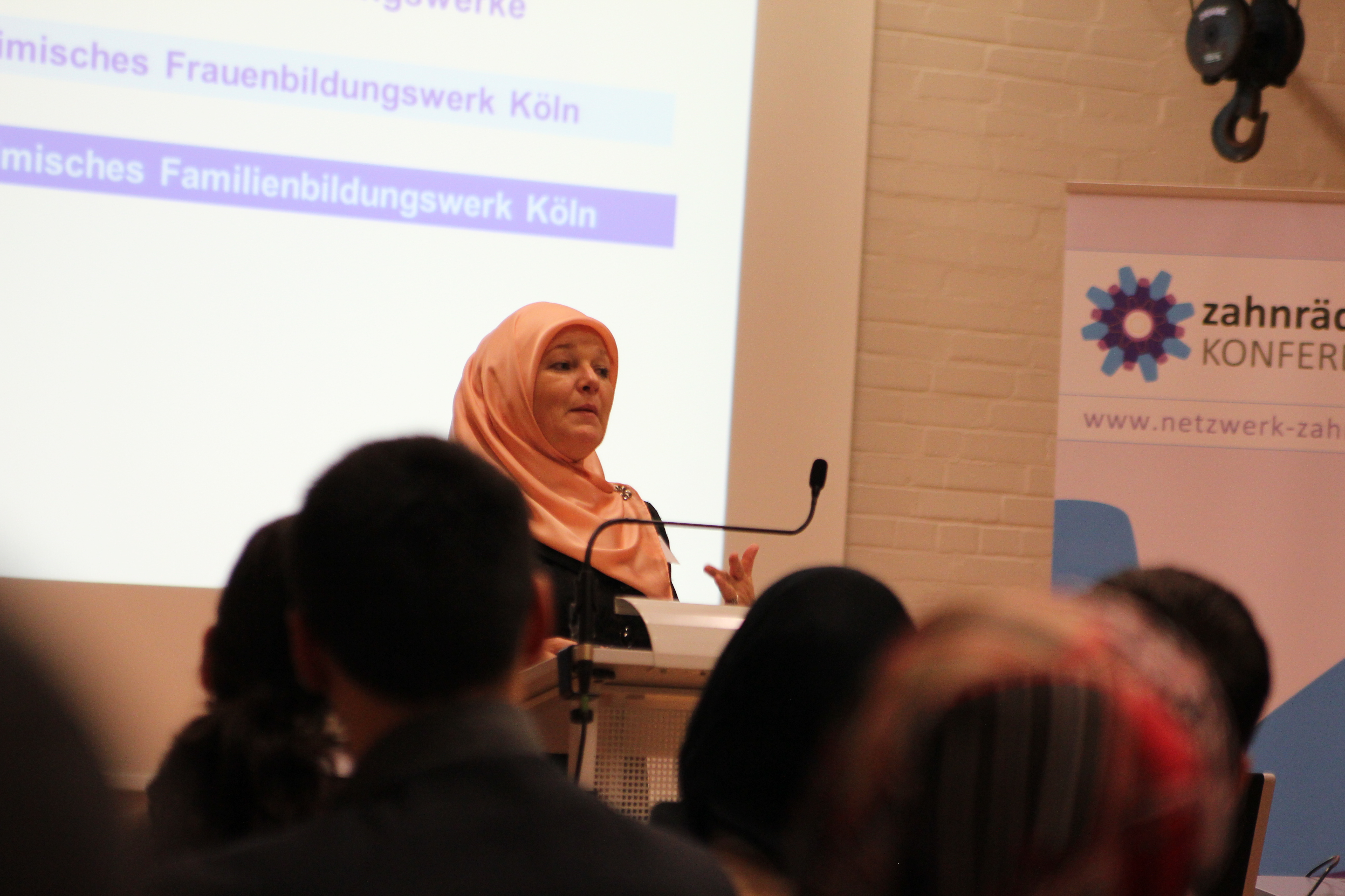 Der Abend wird abgerundet durch einen sehr beeindruckenden Vortrag von Erika Theißen, der Geschäftsführerin des Begegnungs- und Fortbildungszentrums muslimischer Frauen e.V. (BFmF e.V.) in Köln. Mit dem mehrsprachigen und vielseitigen Angebot an Projekten im Bereich der Betreuung, Bildung und Begegnung schafft das BFmF eine vorbildliche Plattform für bisher mehrere Tausend–zum überwiegenden Teil weibliche - Muslime, aber auch für ca. 30% Nichtmuslime.