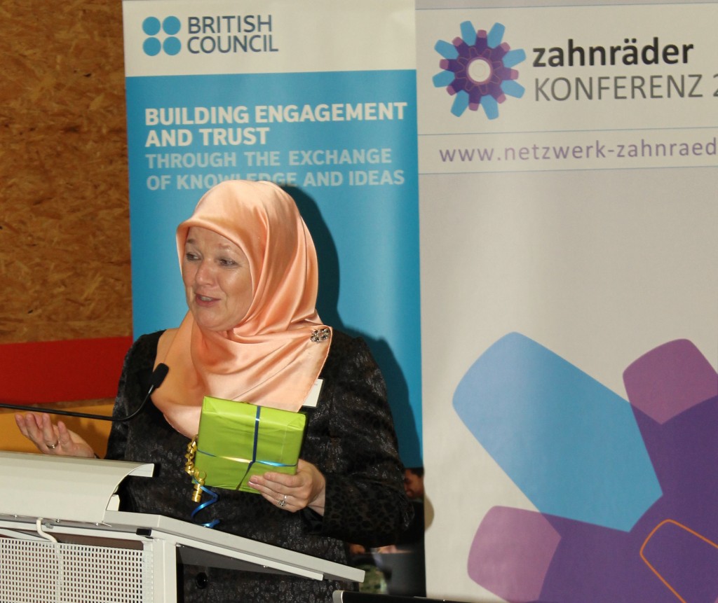 Frau Theißen, die zur Zahnräder Konferenz 2011 als Rednerin eingeladen war, hat die Arbeit des BFmF e.V. von den kleinen Anfängen vor fünfzehn Jahren bis zum heutigen Tag in einem inspirierenden Vortrag zusammengefasst. Die kontinuierliche Arbeit des Vereins und seine Zielsetzungen ließen bei uns keinen Zweifel aufkommen, dass Frau Theißen diesen Preis verdient hat.